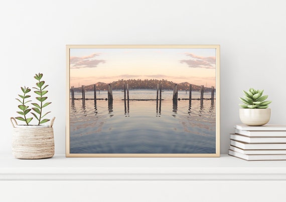 San Francisco Bay Landscape Symmetrical Art Print, Travel California Photography, San Francisco Bay, Sailing Water Sunset Golden Hour